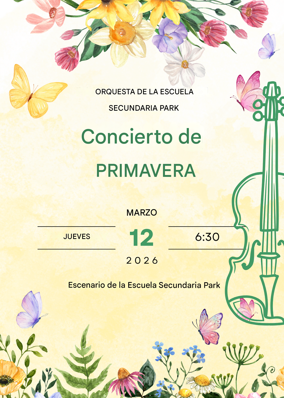 🎵 Orchestra Spring CONCERT March 12 at 6:30pm Park Stage 🎵